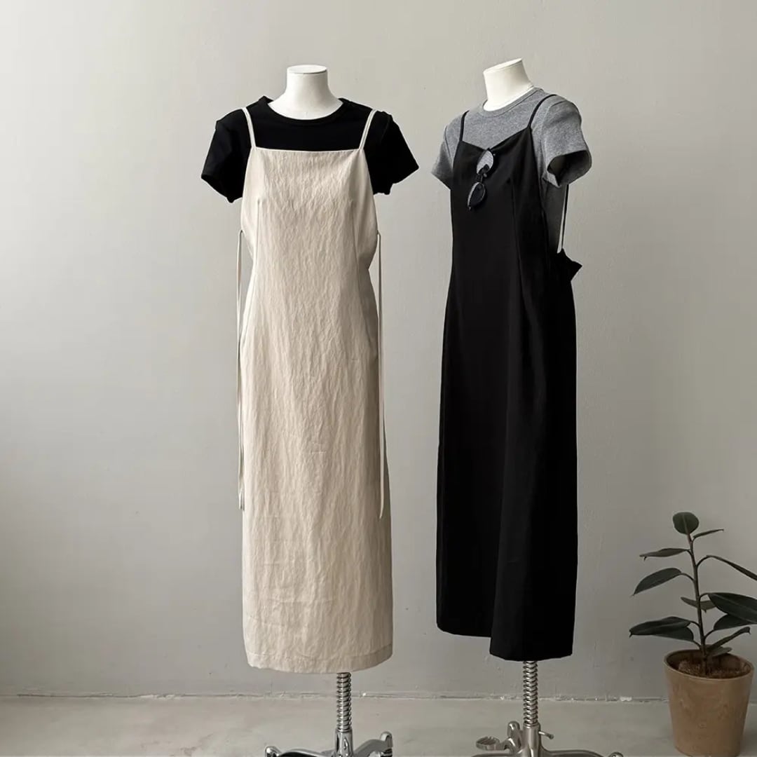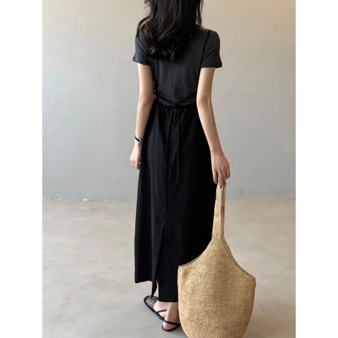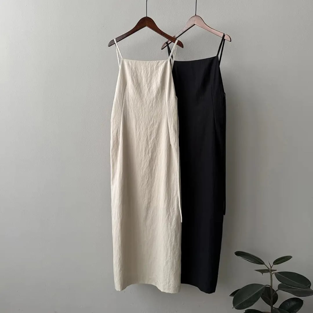 ゆるやかなAラインシルエットが美しい、ロング丈のキャミワンピース。