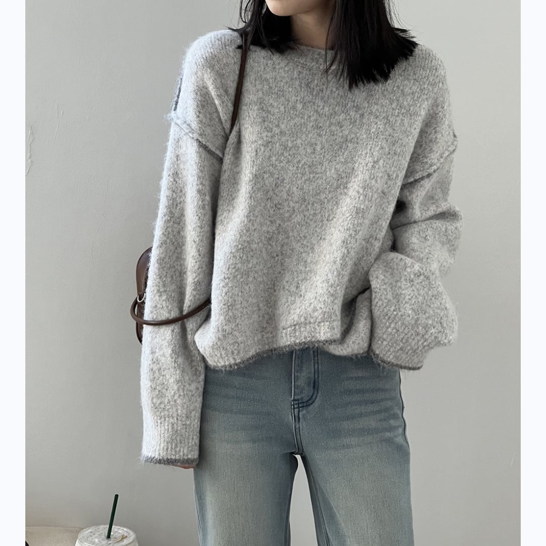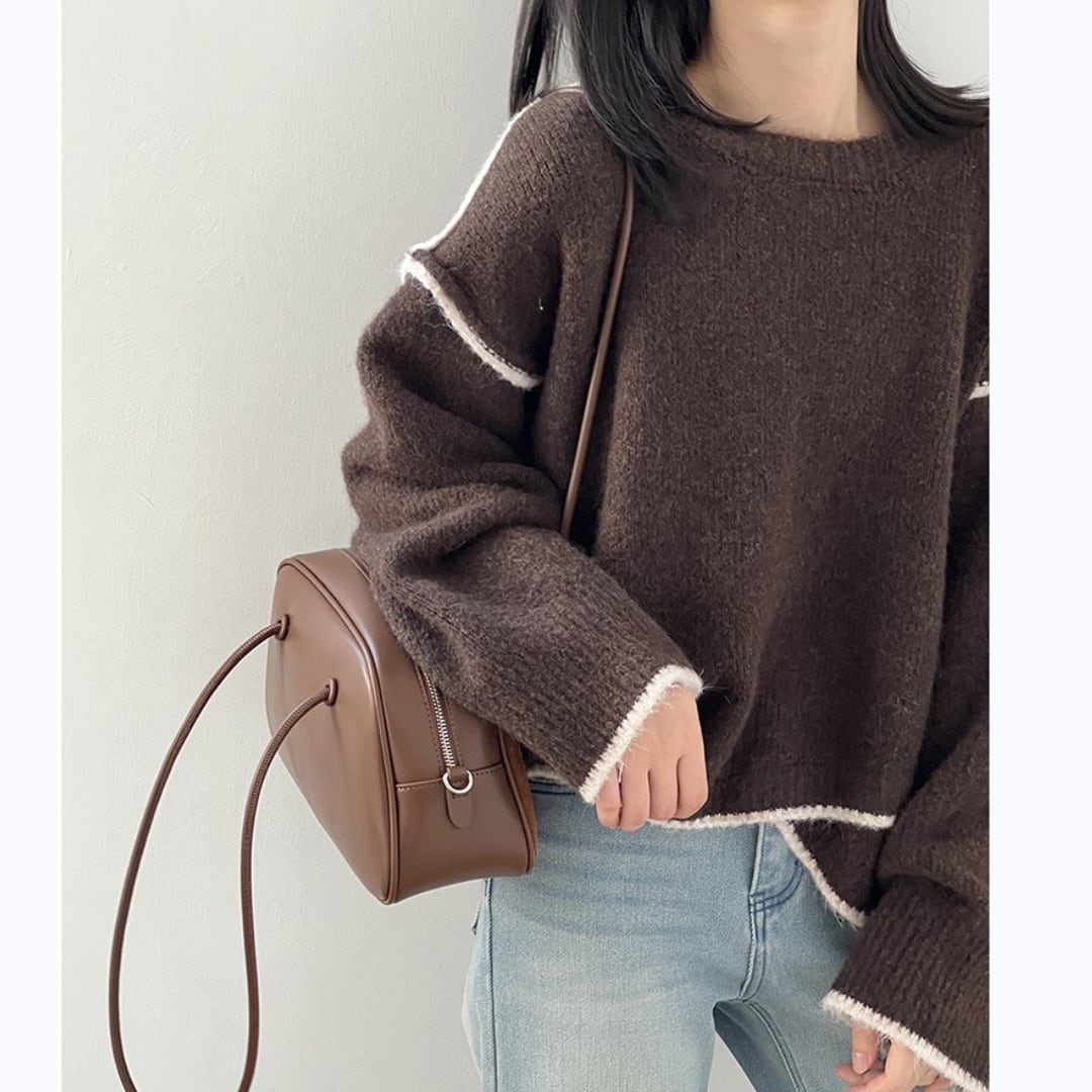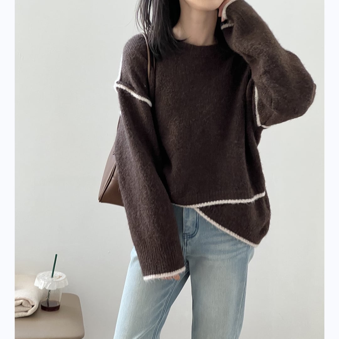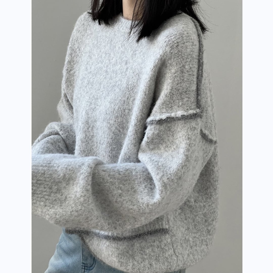 裾のカシュクールデザインがさりげなく女性らしさを引き立てるゆったりニットトップス。