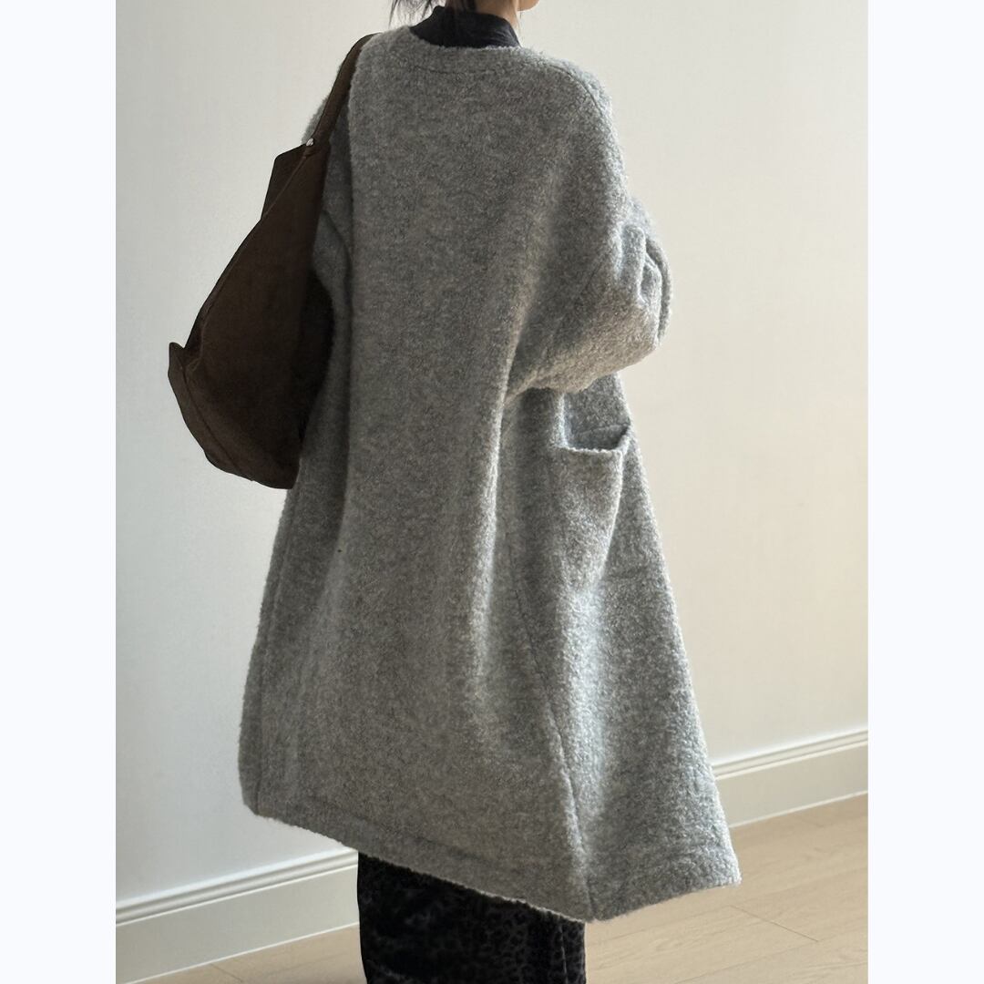 ロングシルエットが縦ラインをつくり、羽織るだけでスタイル良く見える一枚です。