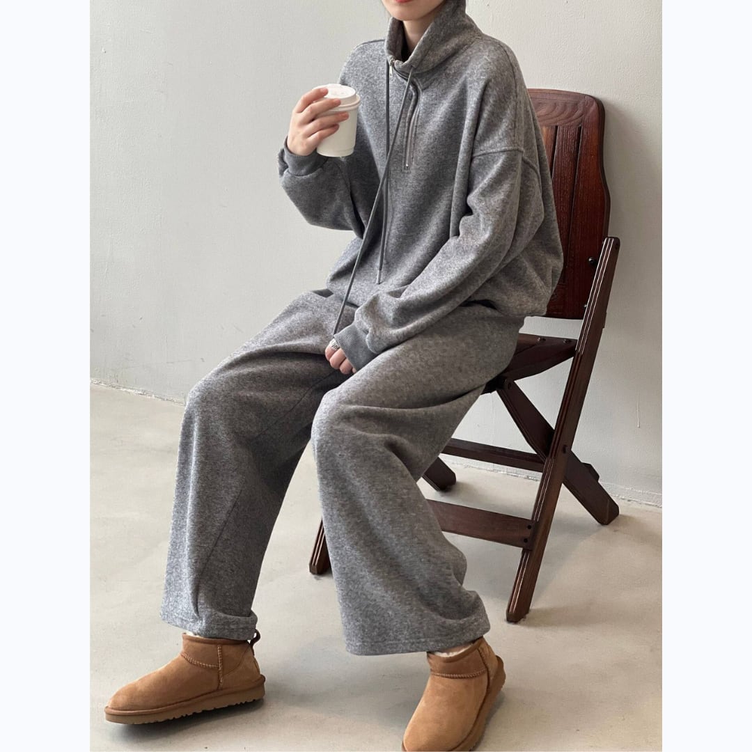 程よいラフさとシーズンムードを兼ね備えた、裏起毛スウェットのセットアップ。