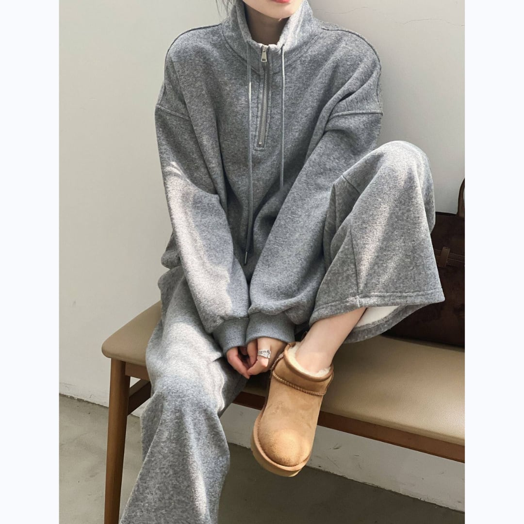 ハーフジップトップス×スウェットパンツ セットアップ 12092
