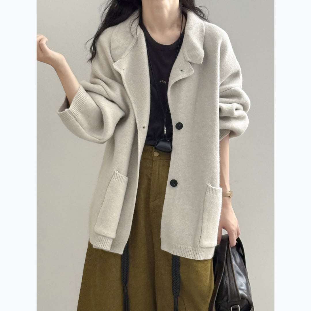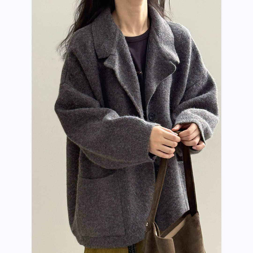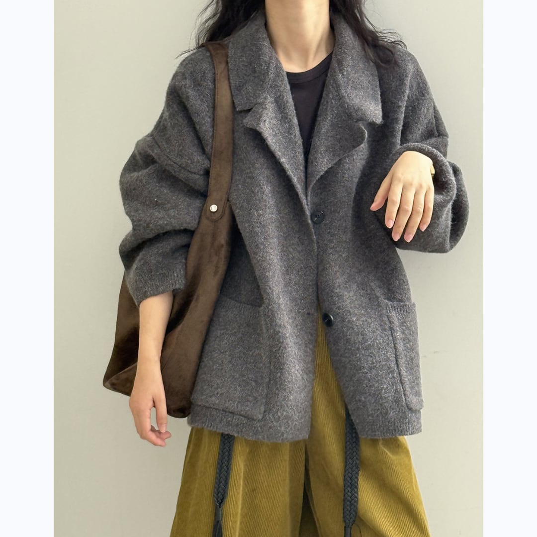 カーディガン感覚でラフにも、きれいめにも着回せる万能アイテムです。
