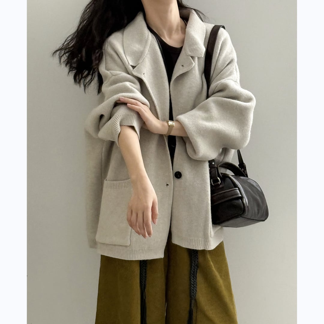 ジャケットのきちんと感はありつつ、カチッとしすぎない柔らかなニット素材でデイリーに使いやすい1枚です。