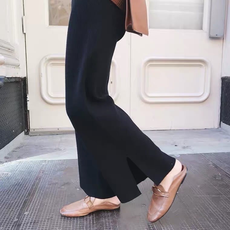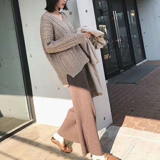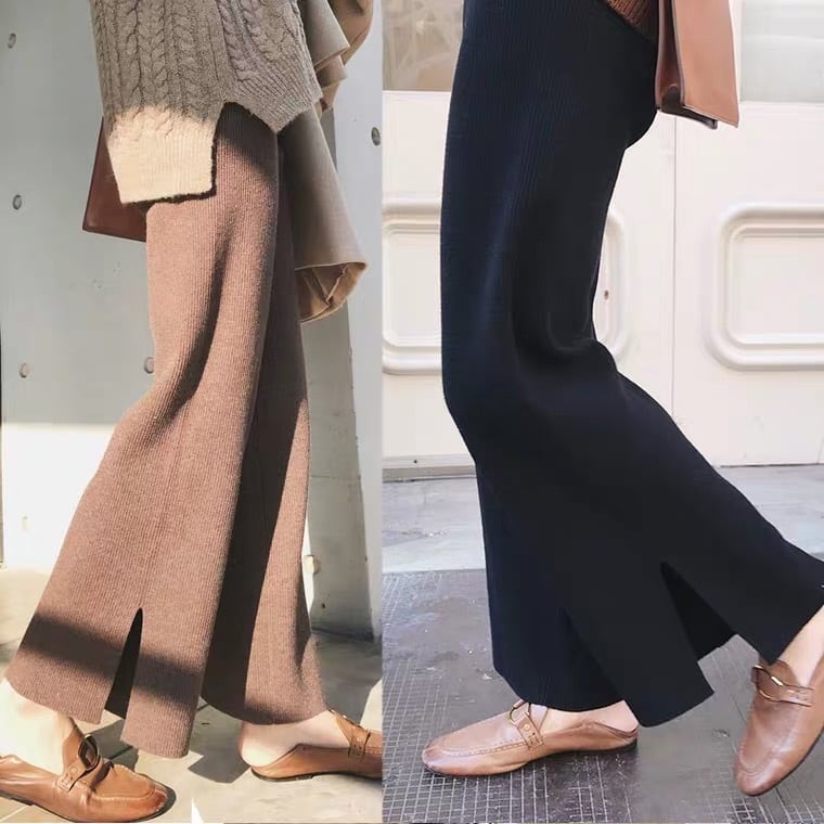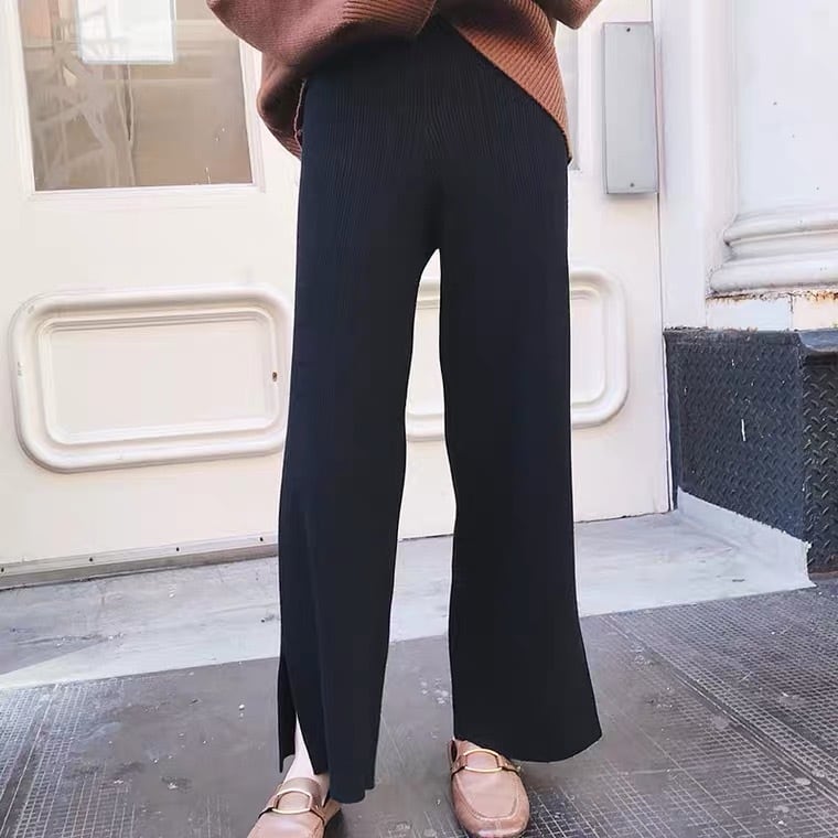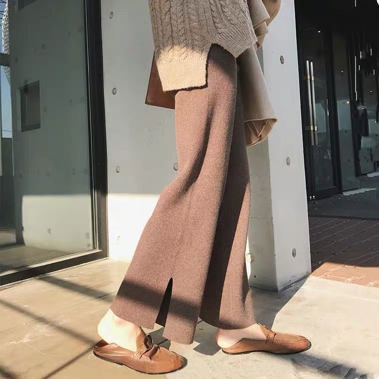 ゆったりとしたシルエットが魅力の ニットワイドパンツ。