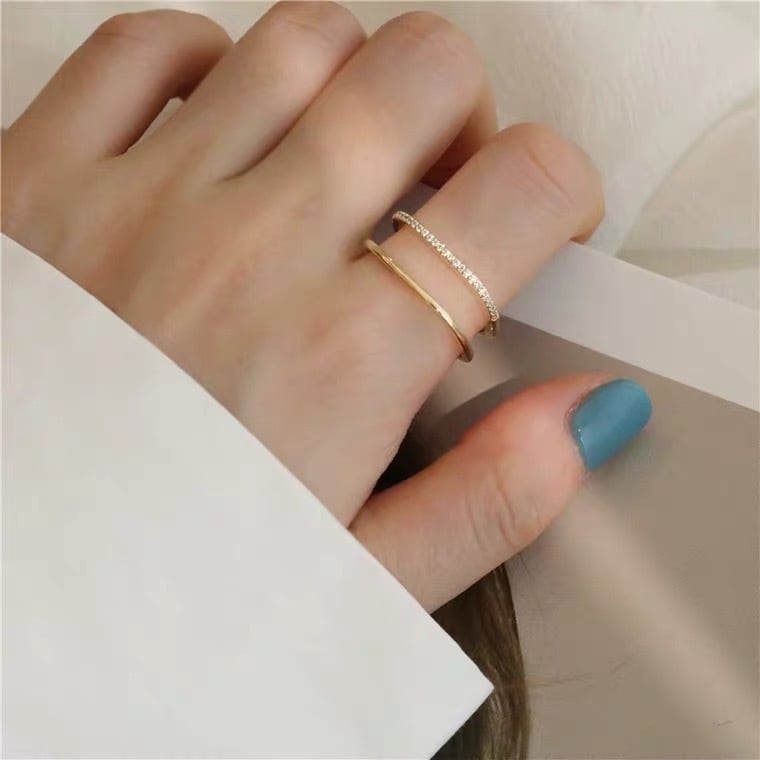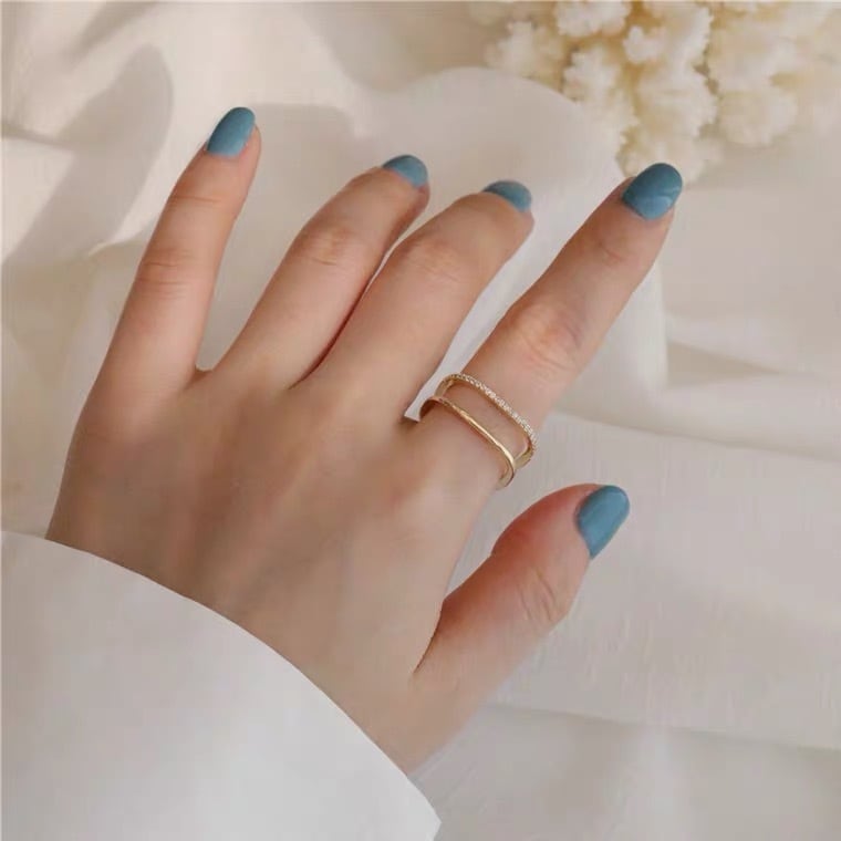 ラインストーン2連風リング 10058