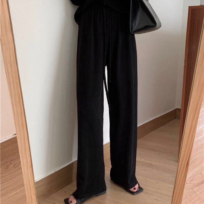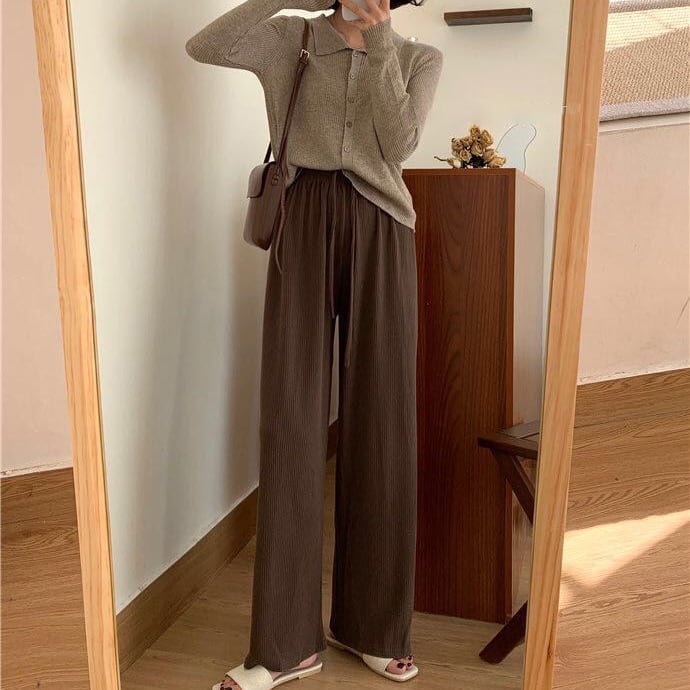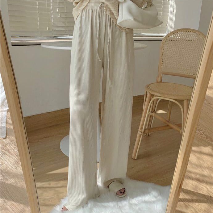 リブハイウエストドレープワイドパンツ 10466