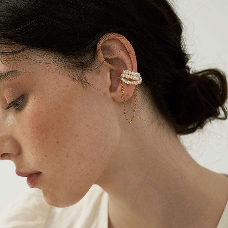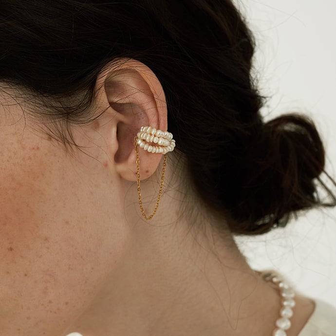 パールゴールドタッセルイヤークリップ 10495