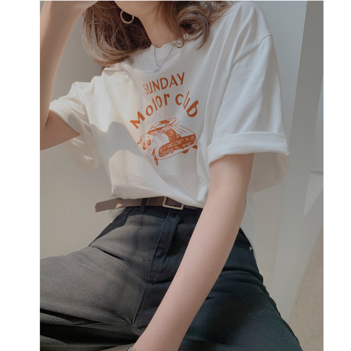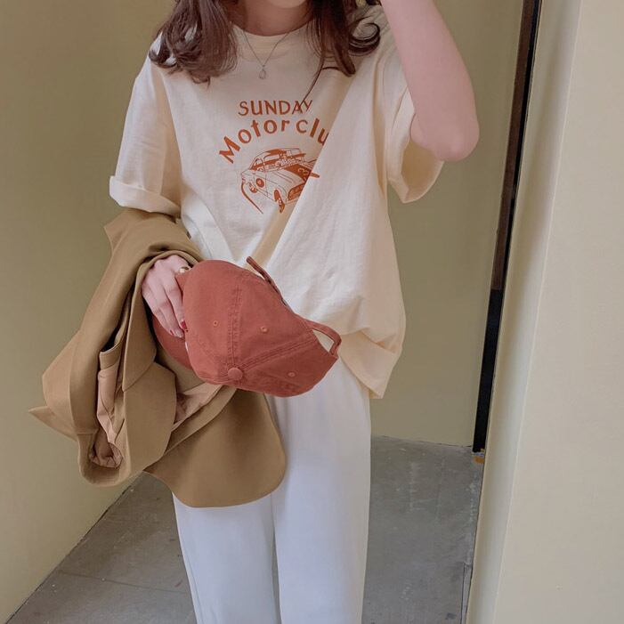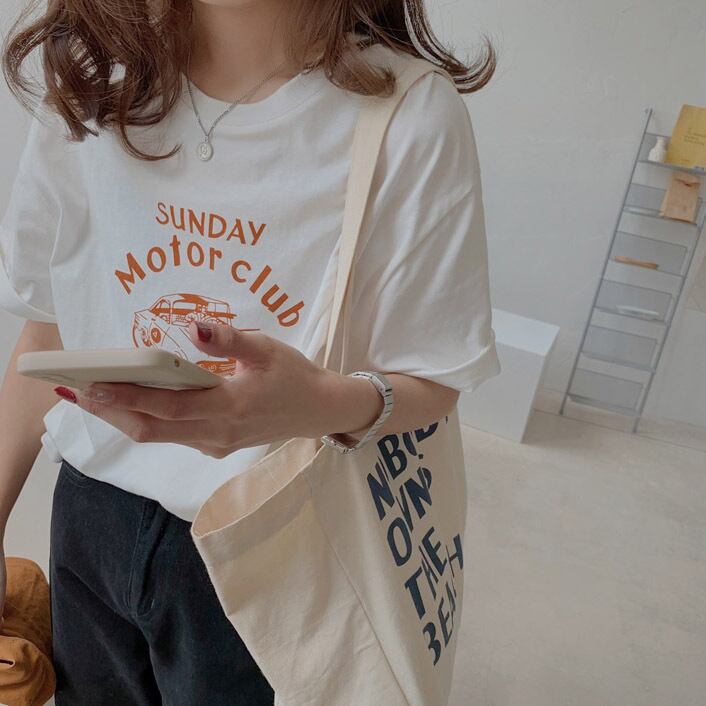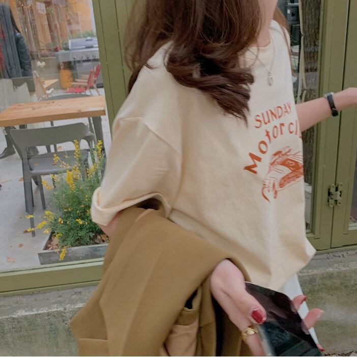 ラウンドネックコットンプリントTシャツ 10608