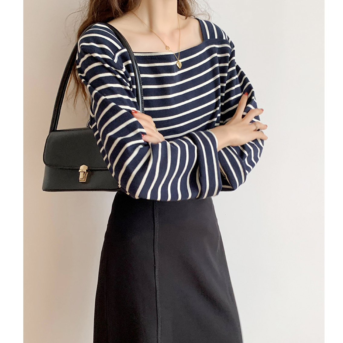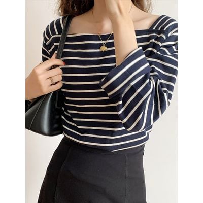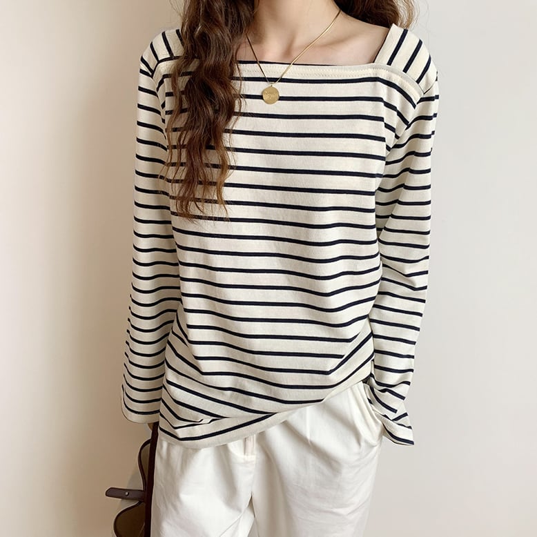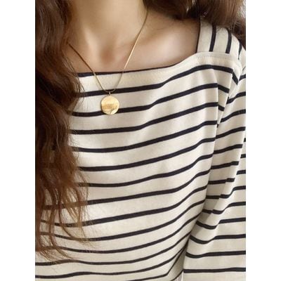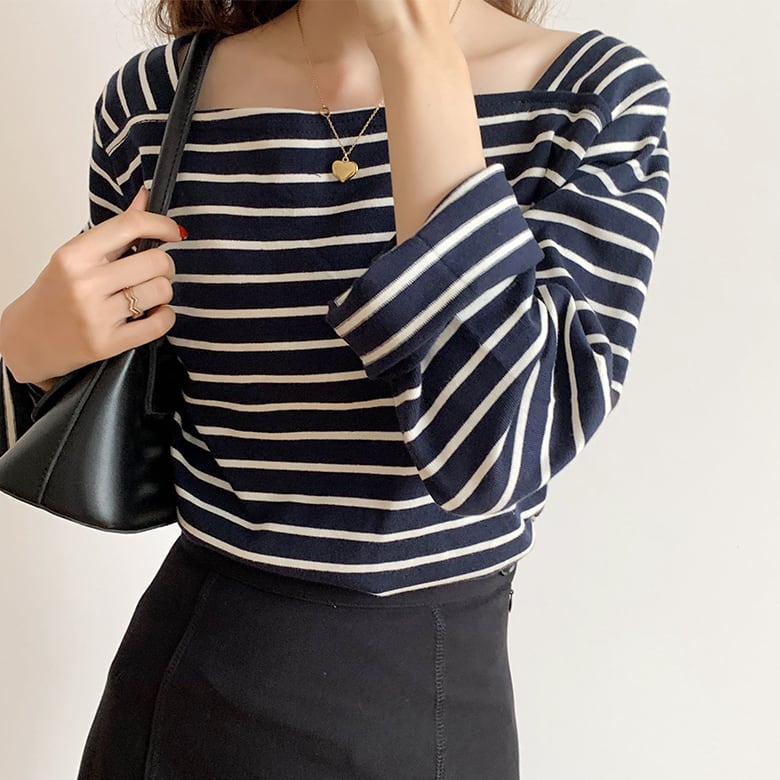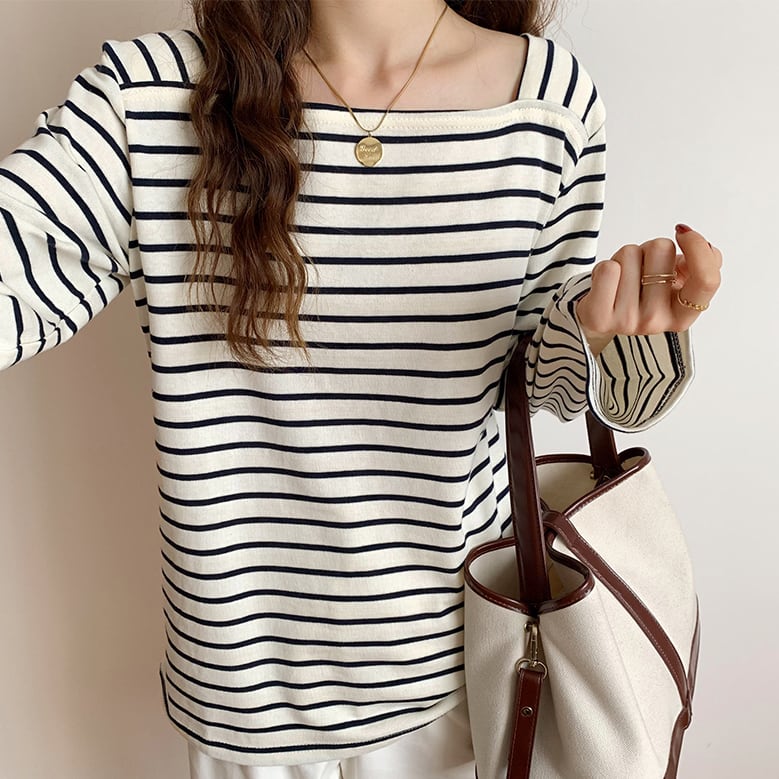 細めのストライプ柄でオフコーデにラフなカジュアルさをオン。