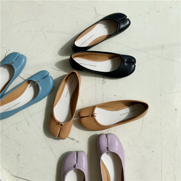 足袋を模したような足先がおしゃれなフラットシューズです。