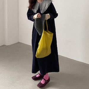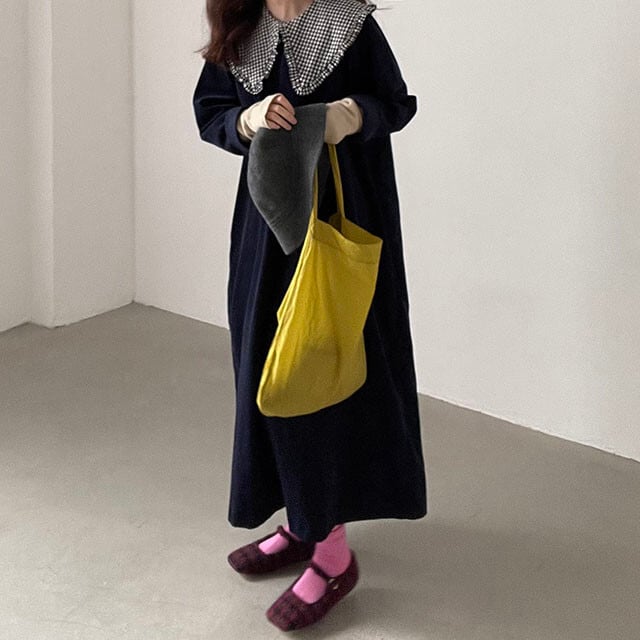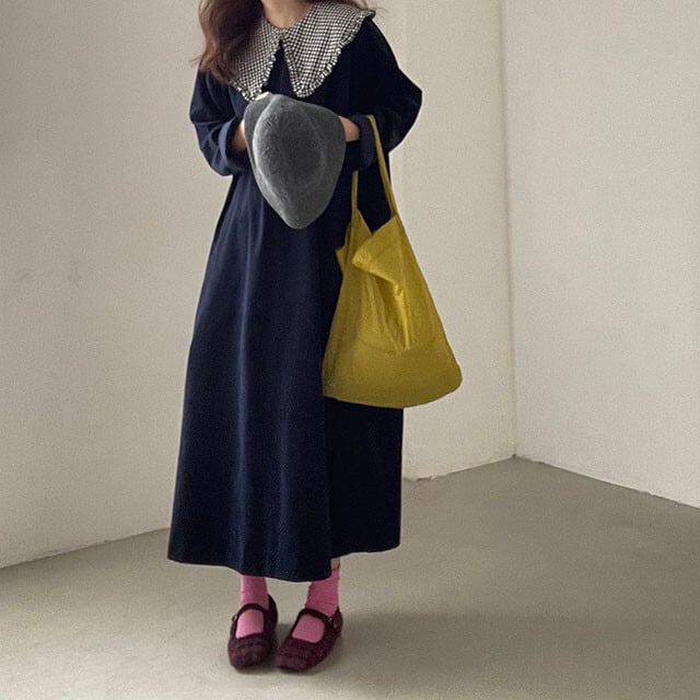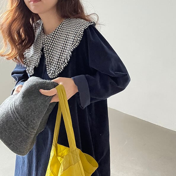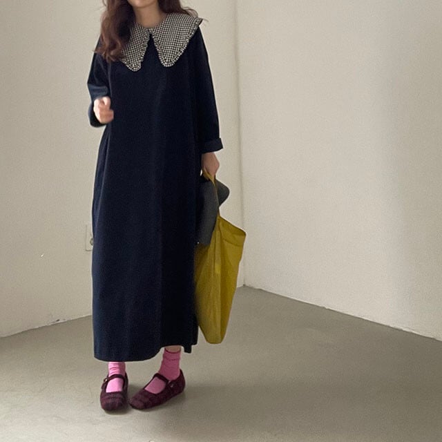 チェック柄が入った襟元がポイントになったロングワンピース。