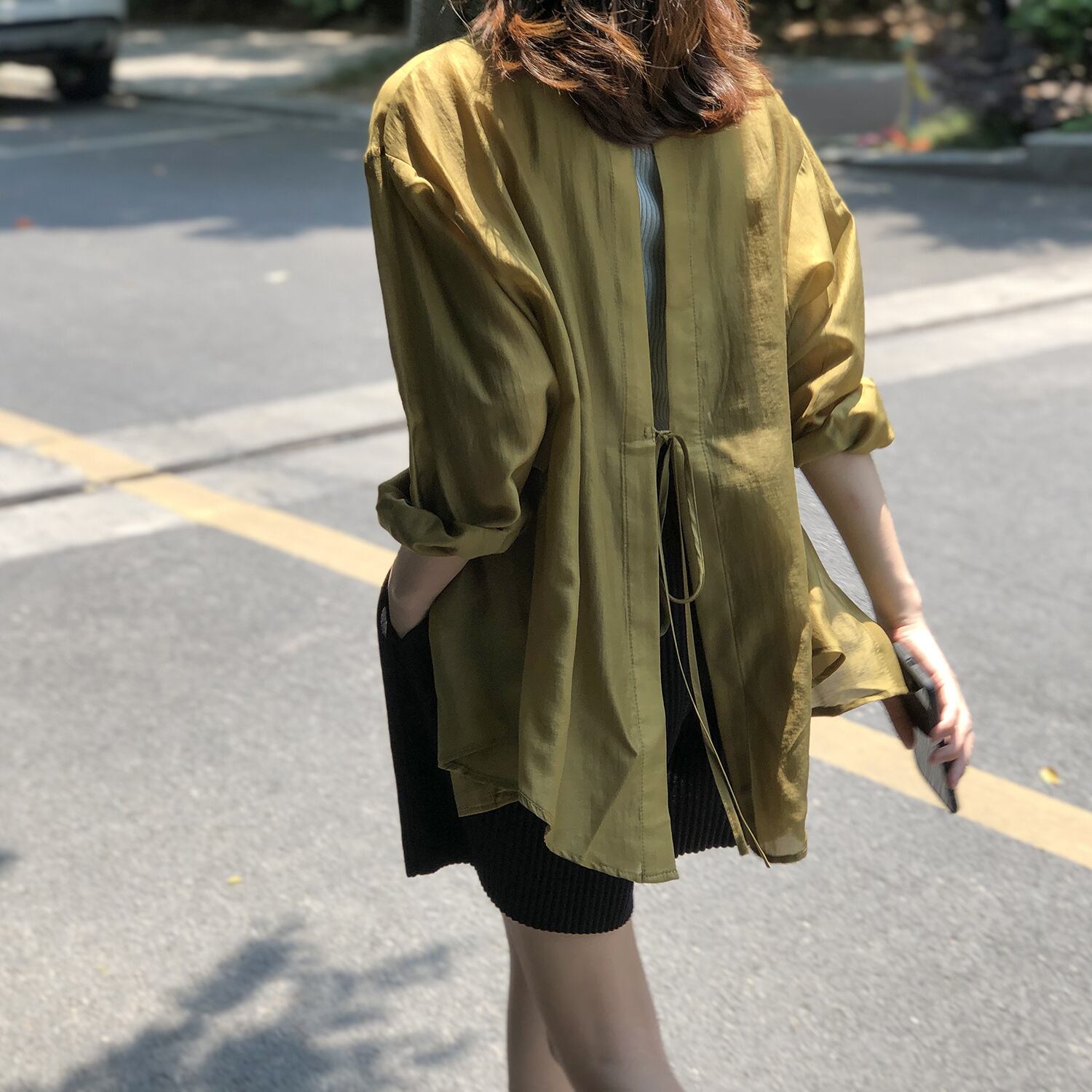 くすみカラーが映えるバックタイコンシャスシャツ。