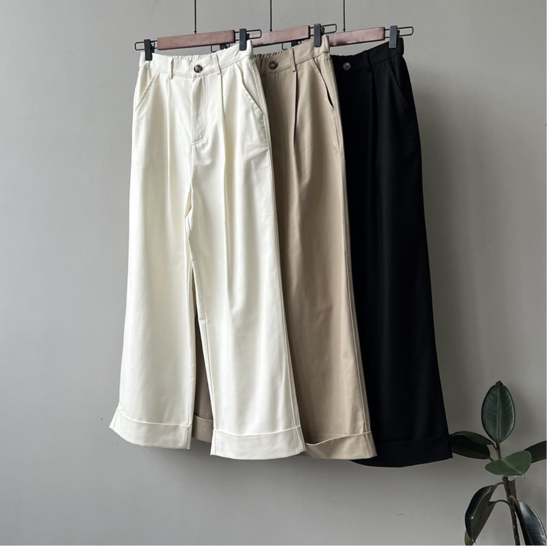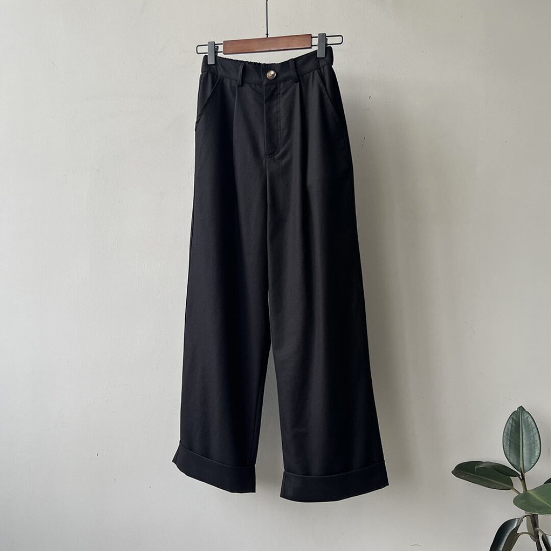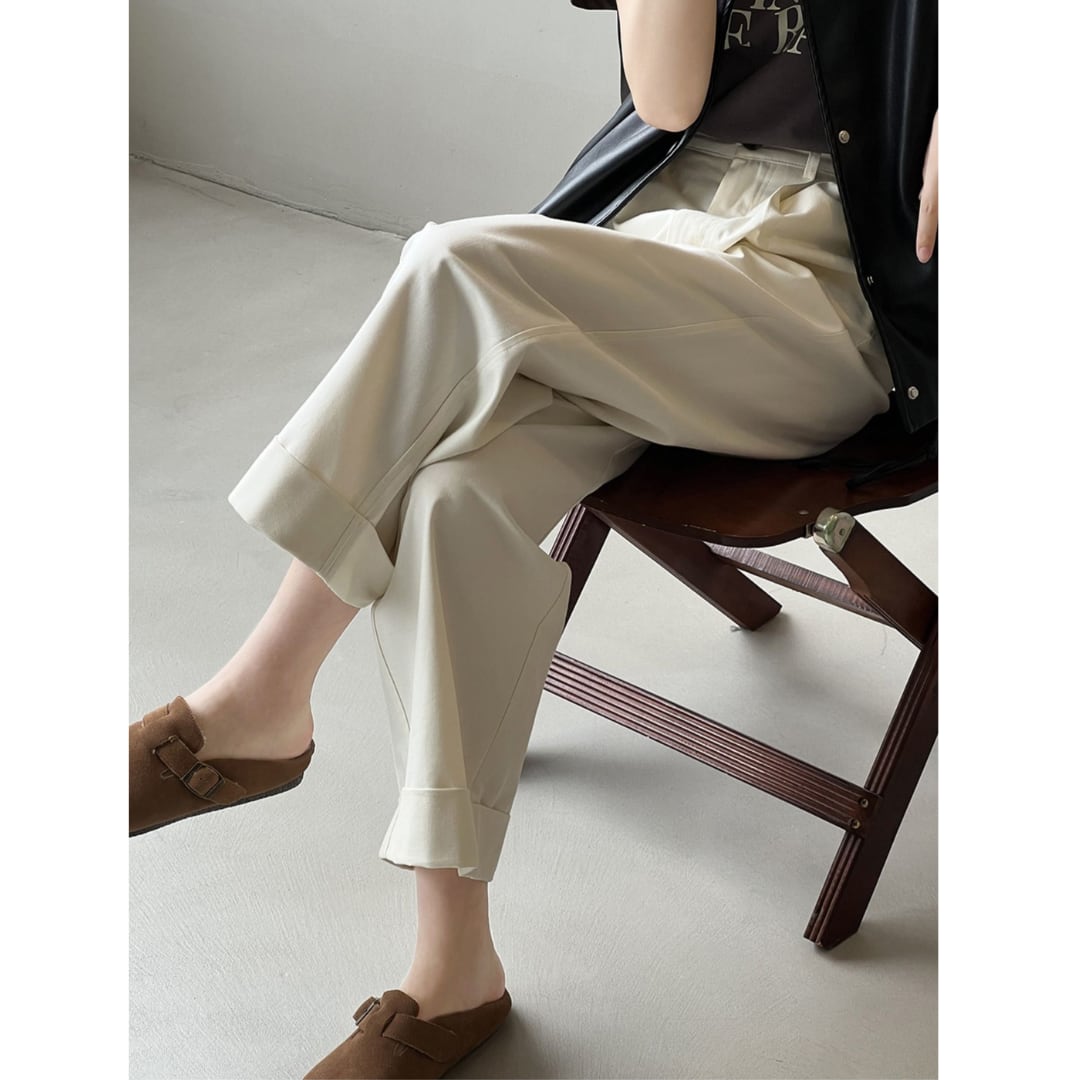 オシャレなロールアップデザインが特徴のワイドレッグパンツです。