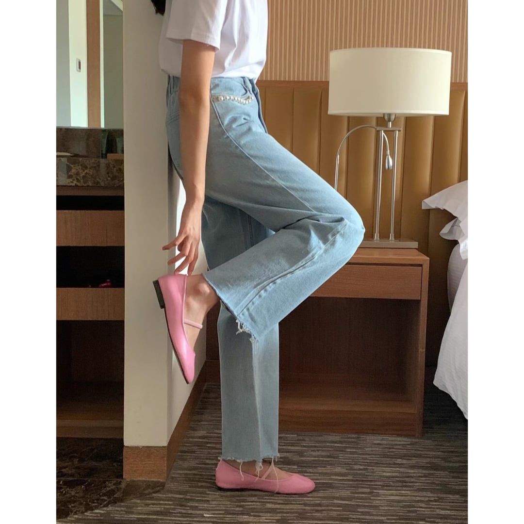 普通のジーンズからランクアップできるパールポケットデニムパンツ。
