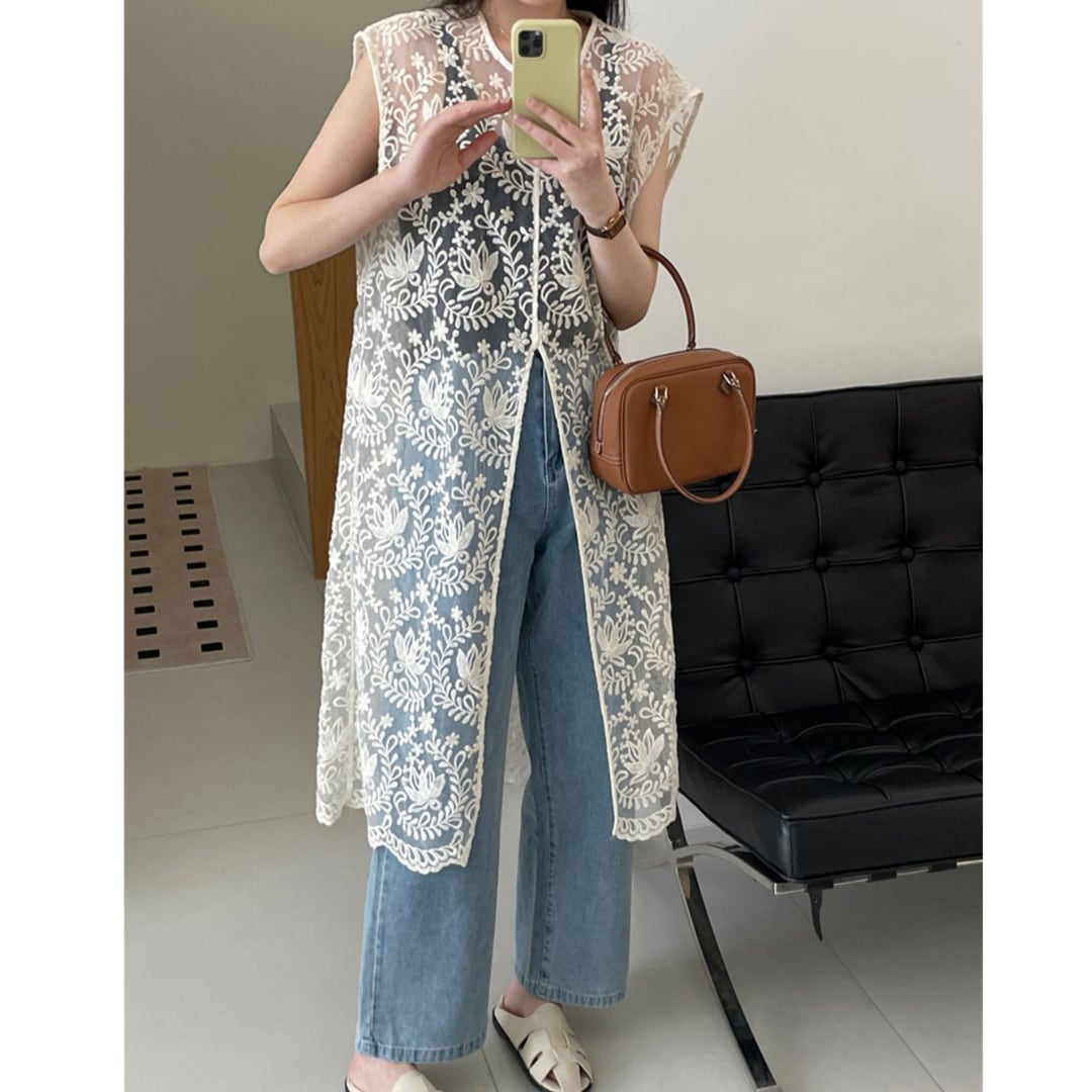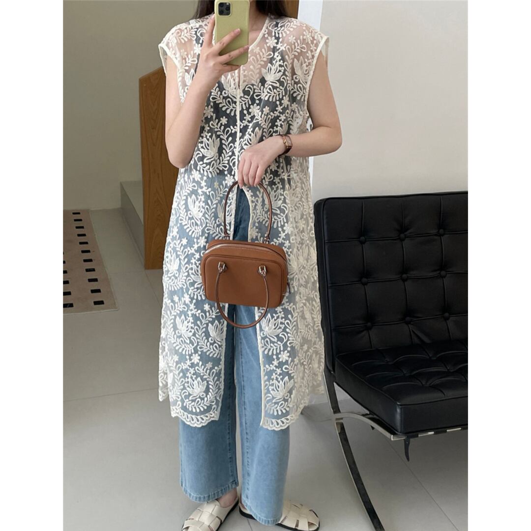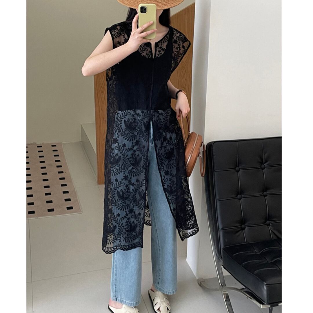 インナーの上にレイヤードして着こなしたいシアートップス。