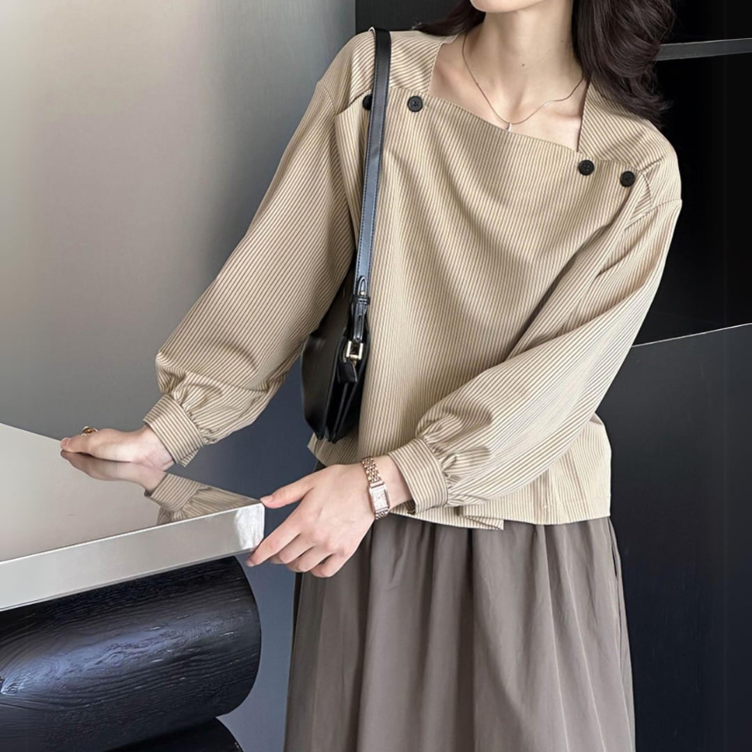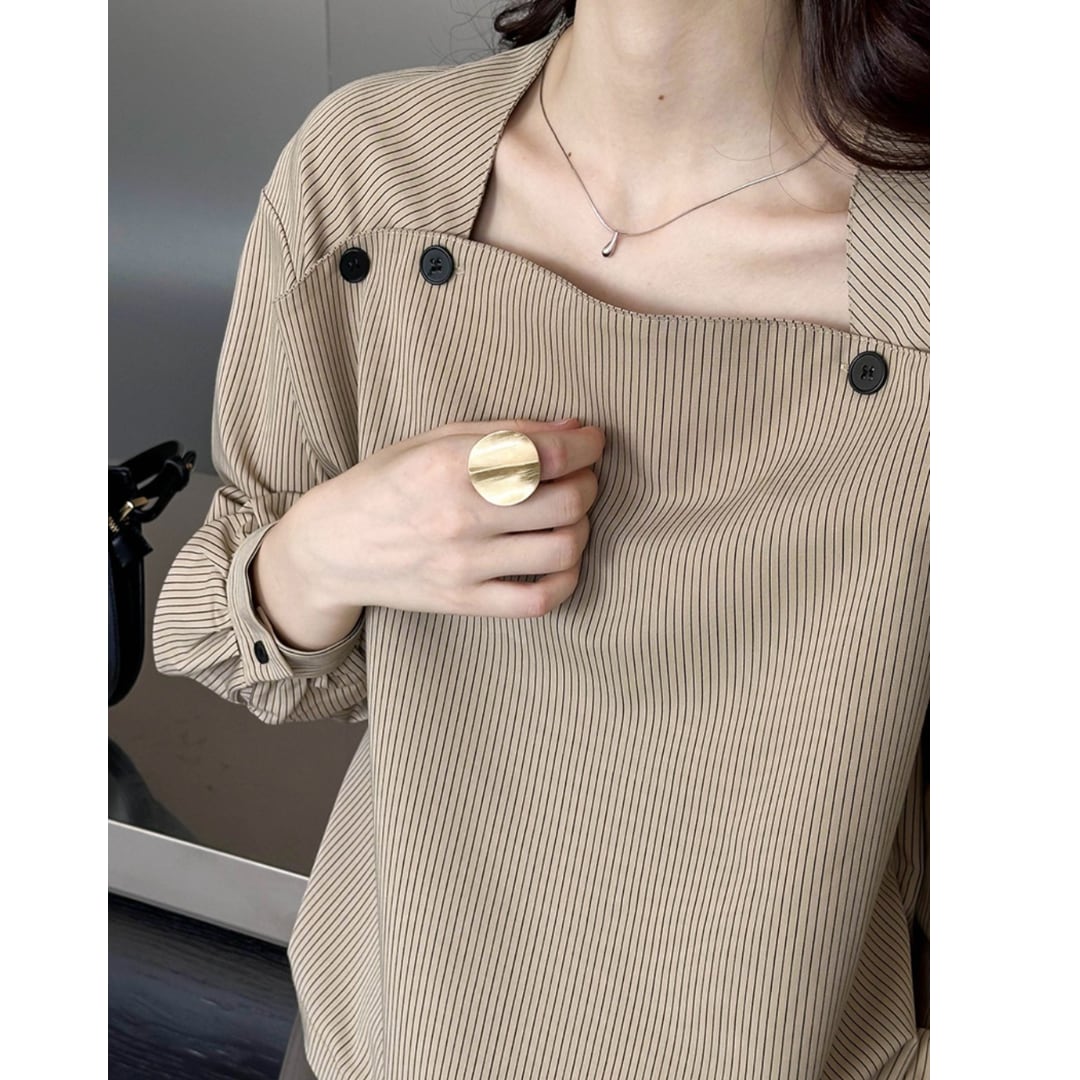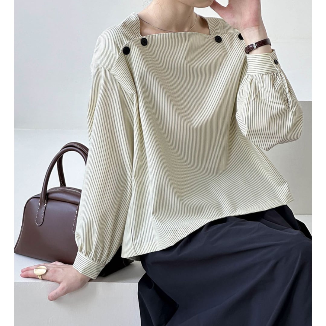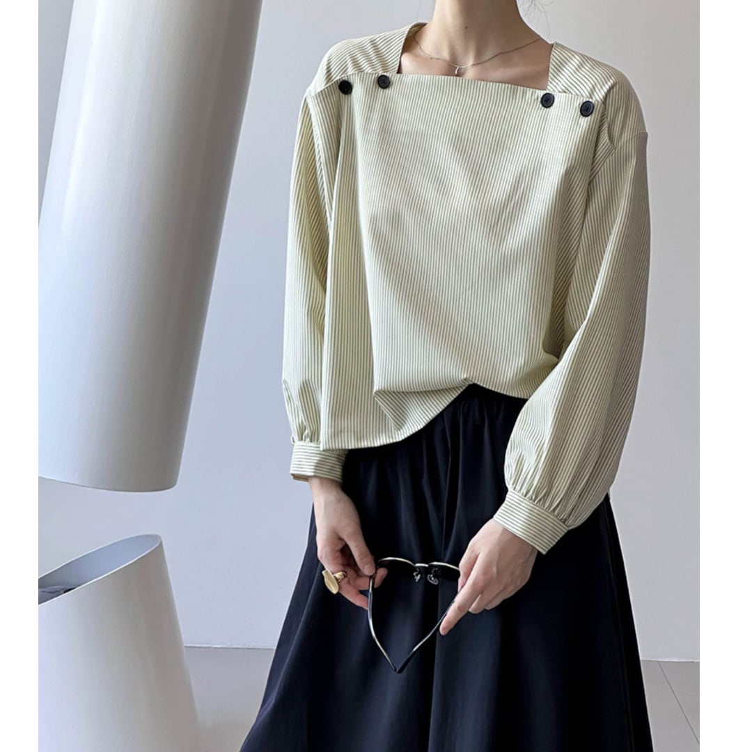 スクエアネックストライプシャツ 11979